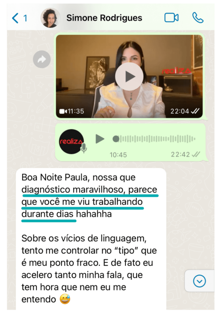 Todas as análises são feitas pela mentora, especialista em comunicação e fundadora do Instituto Realiza, Paula Vieira Lauria.