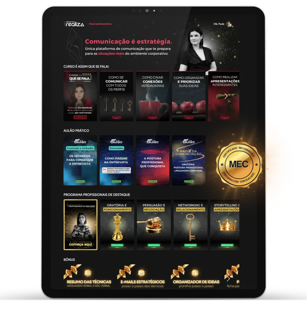 Especialista em comunicação corporativa e fundadora do Instituto Realiza: a maior plataforma de comunicação estratégica reconhecida pelo MEC.