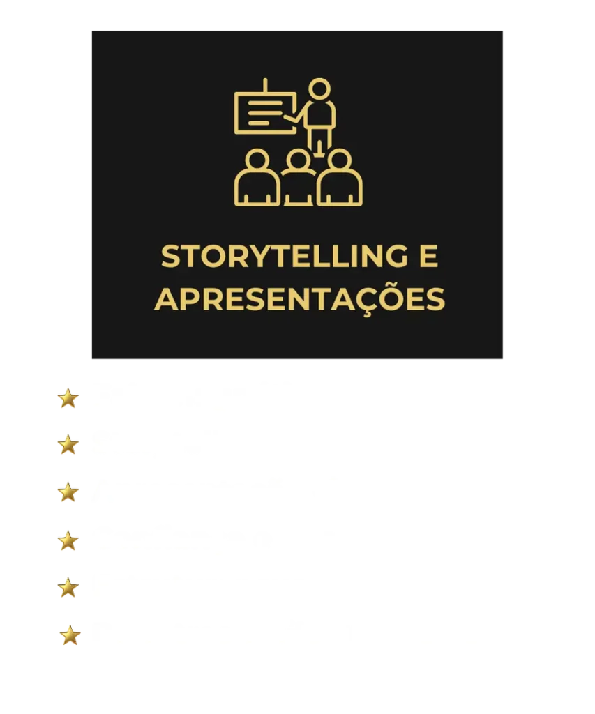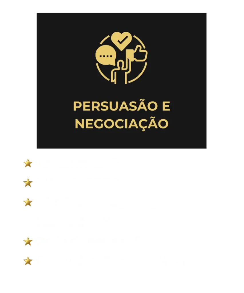 Todo o curso foi feito pensando na utilização prática, ou seja, você poderá baixar as planilhas que contém os resumos, scripts e preparação para interagir antes de uma reunião ou apresentação de trabalho. Além disso, todo conteúdo dos slides você poderá baixar em PDF.